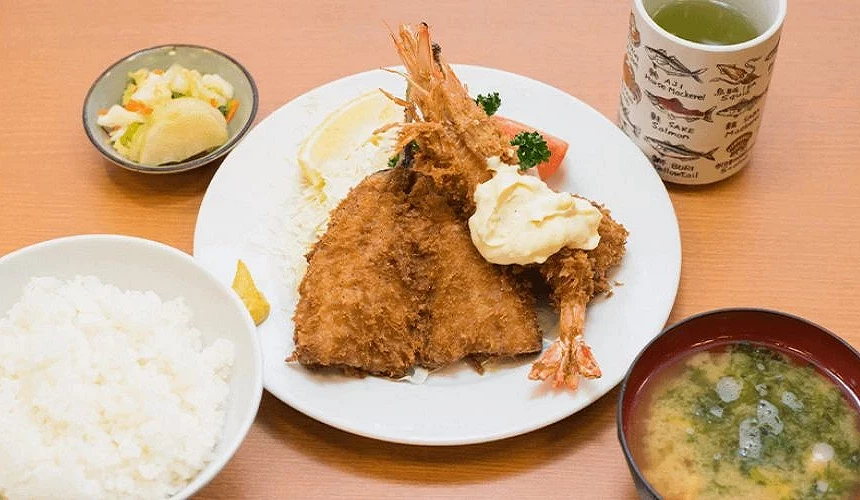 在筑地市场时期便以炸物闻名的「八千代」,曾经多次登上日本电视节目。人气首选是份量惊人的「炸虾定食」,而炸虾、炸鱼与炸干贝组合的「C定食」也非常受到欢迎。每周二、周四、周六还有限定的「叉烧蛋定食」,咸香入味的叉烧搭配滑嫩半熟蛋,每一口都非常下饭,是市场内的隐藏人气招牌,有机会一定要来吃看看喔!