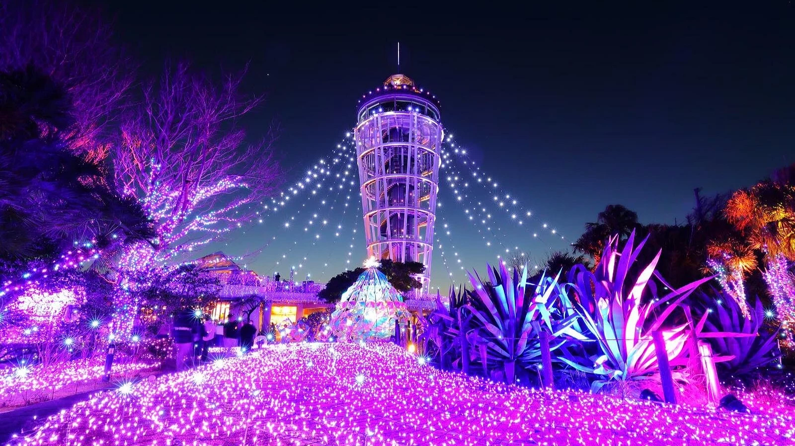 冬季限定的「湘南宝石~江之岛缤纷光彩祭典~」,以「江之岛海烛塔」与「塞缪尔科金花园」为主灯区,延伸至片濑海岸。当海浪与夜色交织,整座岛闪耀如宝石般梦幻,更荣获「关东三大点灯活动」及「日本夜景遗产」殊荣,每年11月底至翌年2月举办,每年都吸引无数旅客专程前往,只为一睹湘南冬夜的浪漫光景。今年以光与色的祭典为主题,活动结合了海岸线的自然景观与艺术灯光设计,营造出闪烁如宝石的梦幻夜景。