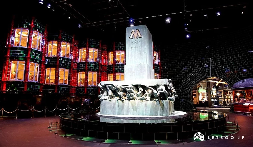 哈利波特世界的「魔法部」首度登场,只有东京才看得到!这座占地面积900平方公尺、挑高10公尺巨型又魔幻的空间,由红色与绿色磁砖组成,空间中央矗立着刻上「魔法即是力量」的纪念碑,令人一踏入其中就感受到满满魄力。在进入魔法部时,必须穿越大理石壁炉下的炉栅入口。实际人站进去后,真的会像电影场景一样配合闪光与烟雾演出,很推荐好朋友们互相录影或拍照留念。