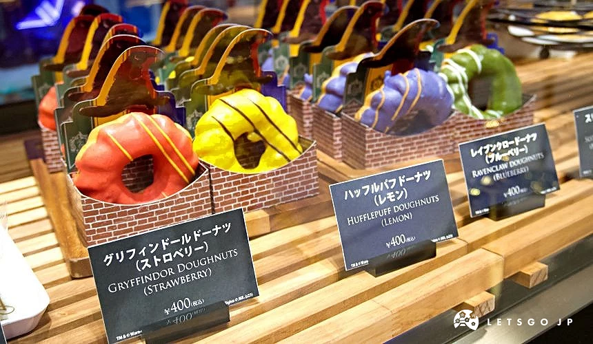 如果想小憩一下、吃点甜点或喝个饮料,推荐到「巧克力蛙咖啡厅」!这里能品尝到以魔法世界为设计灵感的点心,如呈现各个学院色(红、黄、蓝、绿)的玛芬蛋糕与甜甜圈,以及印上象征霍格华兹「H」字样的南瓜派。至于咖啡厅为何以「巧克力蛙」命名?仔细看看座位,就会发现设计灵感来自巧克力蛙的紫色五角包装盒,享用甜点的同时,别忘了顺手拍照留念喔!