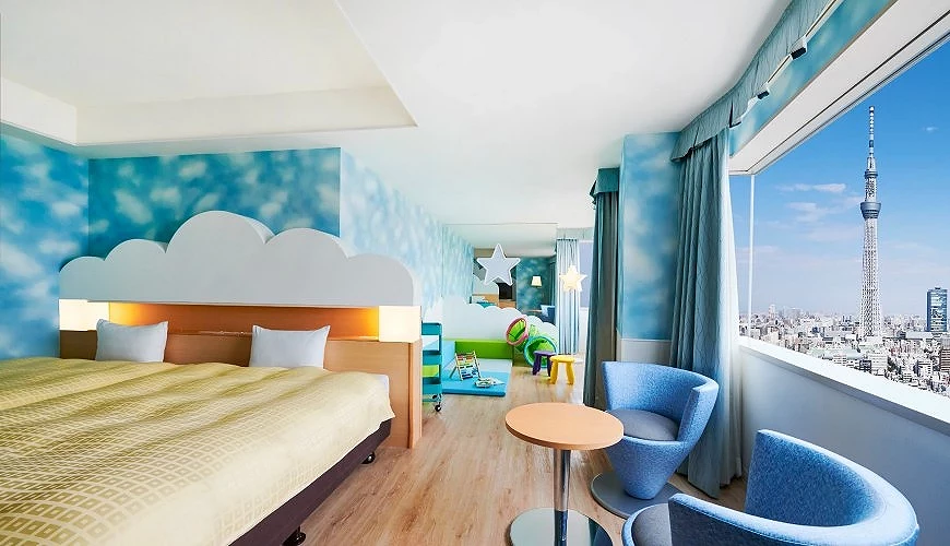 「东武 Levant 饭店东京」是位在墨田区紧邻「锦系町站」的四星级饭店,比起浅草离晴空塔更近,因此饭店朝北的房间,都能远眺晴空塔。「东武 Levant 饭店东京」主打亲子友善住宿,特别针对亲子游的旅客,设计富有游乐空间的房型,房内还有点点星光照明,添增梦幻玩心。此外,这里也是迪士尼在东京市区内少数合作的「好邻居饭店」,有免费通往园区的接驳车服务。只要事先跟饭店预约乘车日期,就能巴士直达,省去电车转乘时间罗!
