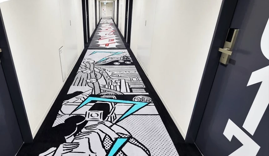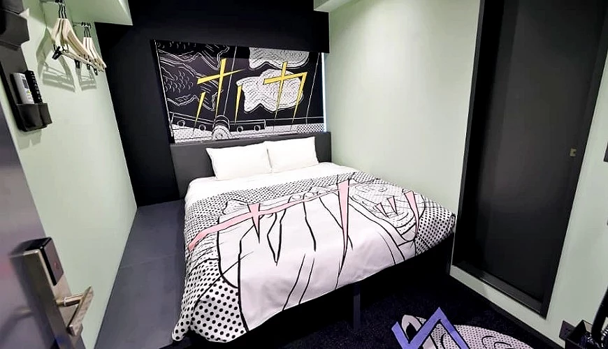 新型态时尚旅店「HOTEL TAVINOS」以象征日本次文化的「漫画」为主题设计,旗下 3 家饭店会依所在位置设计漫画主题,例如浅草馆就以浅草庙会为主题,随处看到正在享受庙会人们的身影,加上漫画特有的状声词,彷佛听见「嘿咻、嘿咻」吆喝声不绝于耳。房内从卧床、卧室墙壁,甚至床头插座区都是 4 格漫画风,大厅还有约 1,500 册的漫画看到饱,彷佛直接住进漫画里!「HOTEL TAVINOS 浅草」采自助 Check in、Check out 服务,从登记入住到寄放行李皆全自动,官网上也推出 360 度环景功能,入住前就能窥视房型,享受文化与科技融合的特别体验。