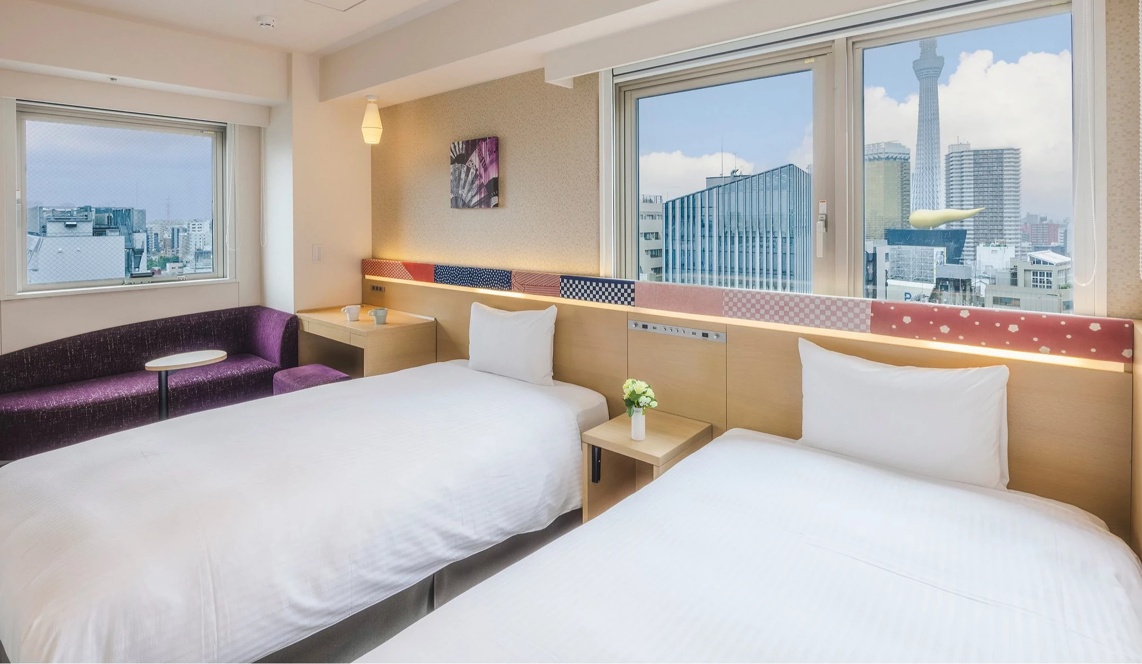「里士满浅草国际酒店」位在浅草商店街闹区内,就在 UNIQLO 楼上、浅草「法兰西座」东洋馆与唐吉诃德正对面。坐拥地理优势,打开窗就看到浅草寺与五重塔,古典而优美地耸立眼前。部分房型面朝晴空塔,能同时看到江户与令和的跨时代地标。另外还与周边店家合作,推出含早餐、浅草 ROX 祭汤入场券等各种住宿方案,扩增室内活动的精彩度。不论想出门闲晃,或是慵懒赖在房间,都能度过精彩的非日常时光。