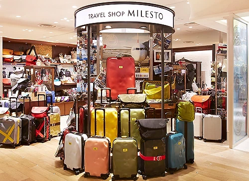 日本设计品牌「MILESTO」的直营旅行用品专卖店,主打时尚与实用兼具的行李箱、背包与各式旅行袋,无论是短途旅游、出差或日常通勤都能找到合适款式。MILESTO的商品特点是轻便、防水机能强、设计简约有型,价格设定在高品质但亲民的范围内,像是背包多落在约7,000~20,000日元之间,行李箱也有约3万日元左右的轻量款,适合自用或送礼选购。店内具备从耐水性高的LIKID系列、适合日常使用的TROT系列到功能全面的UTILITY系列等多种风格商品,满足各种旅行需求。