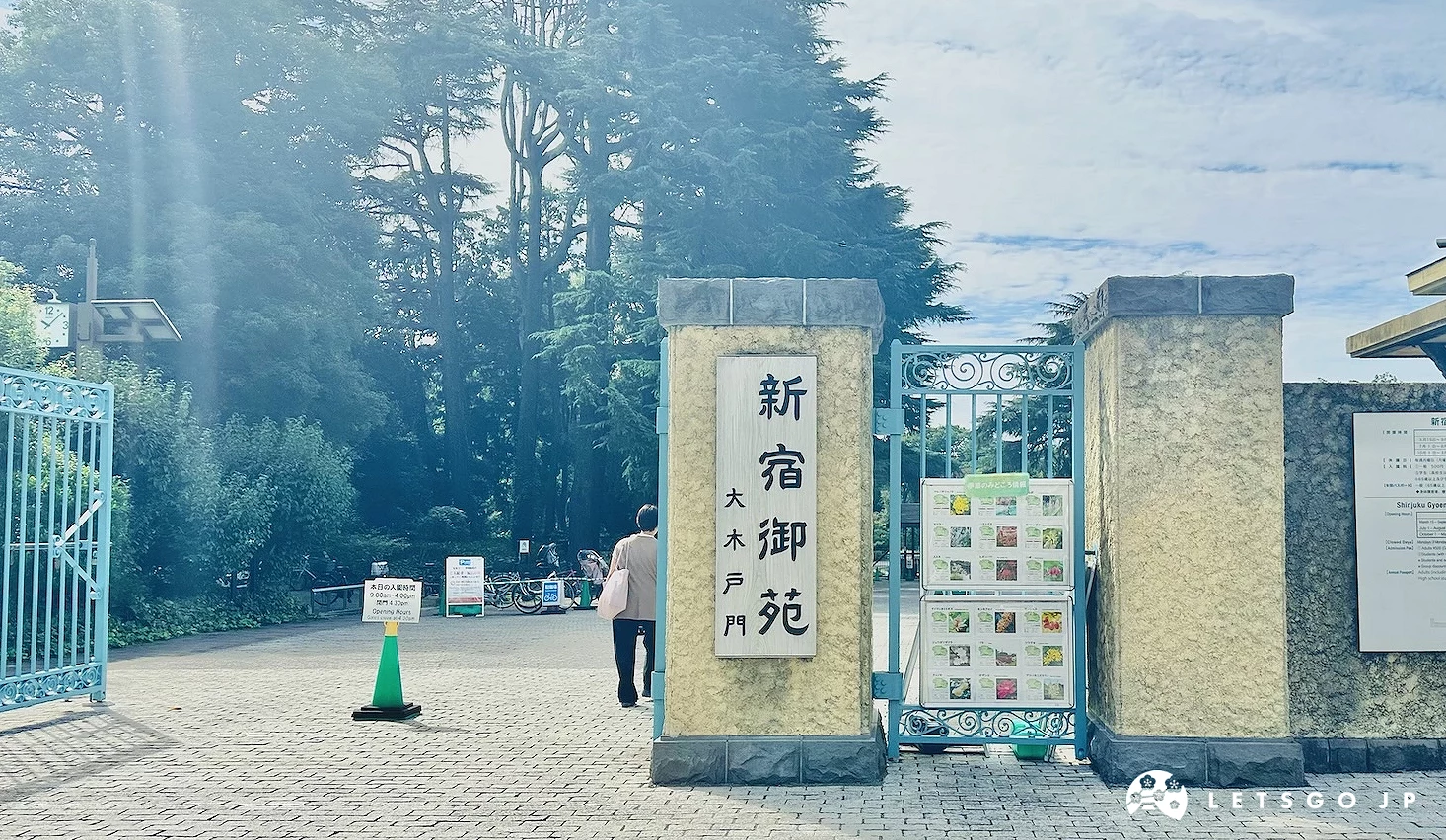 新宿御苑前站2号出口最近,并且靠近大温室。与其他入口相比,这里人潮相对稀少,是三大入口中最安静的选择,很适合希望远离喧嚣、慢慢散步并享受园内绿意的游客。