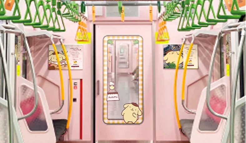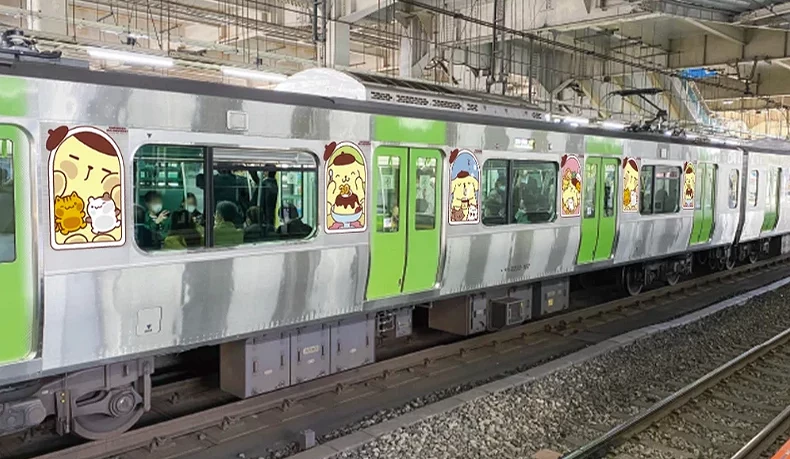 庆祝布丁狗30周年的山手线彩绘列车 图片来源:ポムポムプリン30周年特设サイト